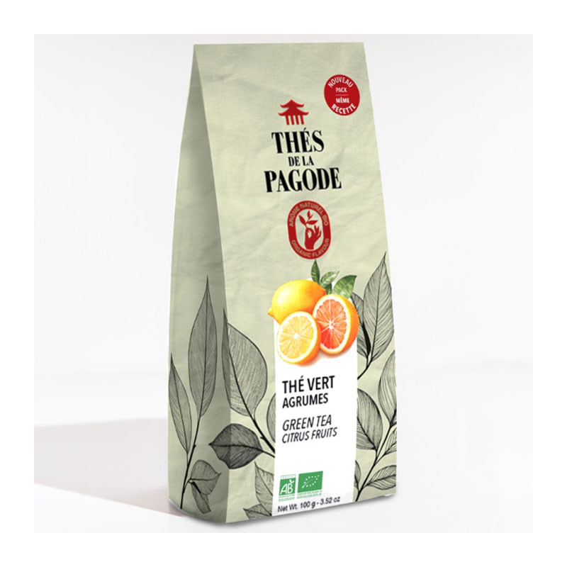 Livraison par Colissimo sous 3 à 5Thé Vert Chun Mee Bio, Ecorces de Citron Bio, Ecorces d'Orange Bio, Arômes naturels de Pamplemousse, d'Orange et de Citron, Fleurs de Souci Bio.