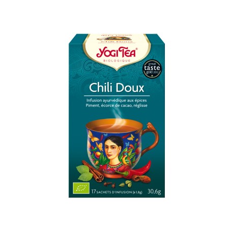 Livraison par Colissimo sous 3 à 5Réglisse, écorces de cacao, menthe en épi, fenouil, anis, gingembre, menthe poivrée, ortie, piment (chili) (1%), cannelle, cardamome, clous de girofle et poivre noir.
