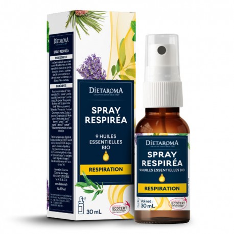 Livraison par Colissimo sous 3 à 5Préparation pour inhalation naturelle des Laboratoires Diétaroma, Respiréa aide à dégager les voies respiratoires.