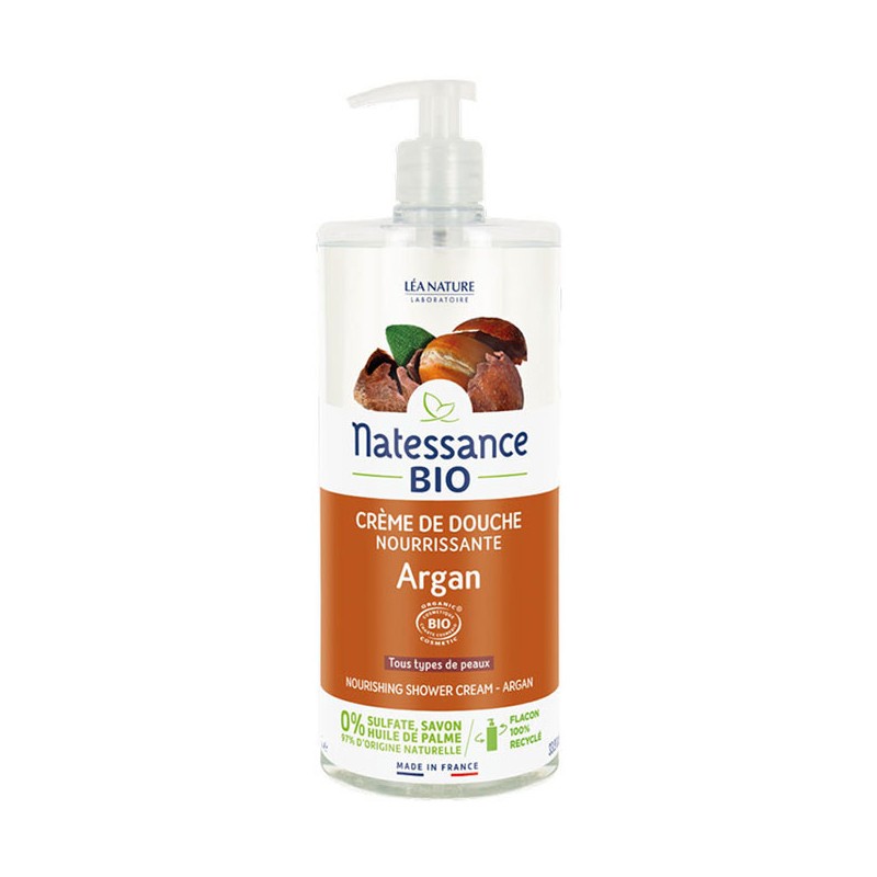 Crème douche bio nourrissante à l'argan, sans sulfate.