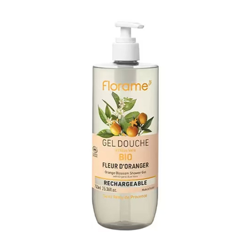 Gel douche à l'Aloe vera, aux huiles essentielles de fleurs d'oranger bio.