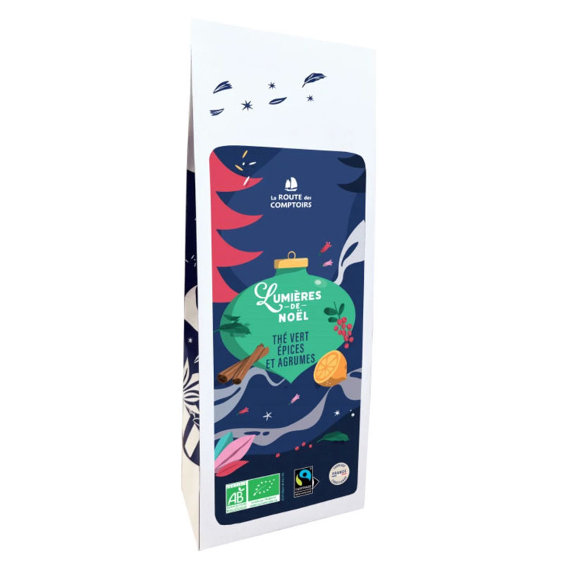 Livraison par Colissimo sous 3 à 5Subtile composition d'un grand thé vert de Chine, d'épices (cannelle, gingembre, clou de girofle, cardamome), d'honeybush d'Afrique du sud, d'écorces d'orange, de morceaux de pomme, de fleurs d'hibiscus et d'arômes naturels d'orange et de citron.